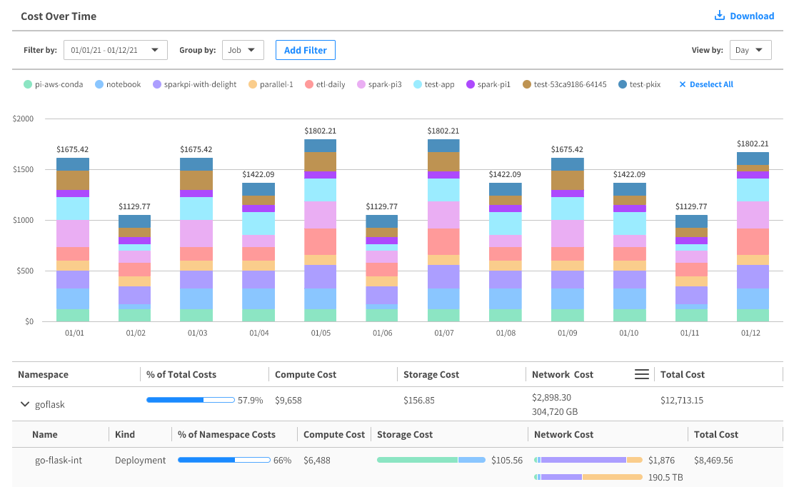 A containerized Kubernetes environment can run many services and applications on shared infrastructure. This makes it difficult to understand the costs for each component, whether it’s an application, service, or environment.